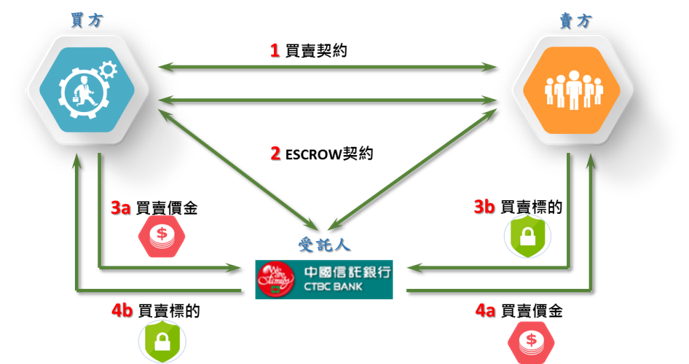 透過ESCROW,可降低前述風險,以保障交易安全,協助交易順暢進行,確保交易當事人履約。